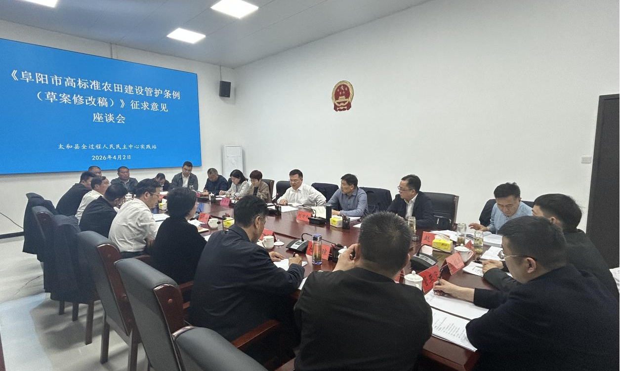 自《条例》被列入立法计划以来,阜阳市人大常委会党组书记、主任章绍伟多次深入全过程人民民主实践站,面对面听取高标准农田建设管护立法意见:2026年1月13日,召开立法项目建议征求意见座谈会,就《条例》立法进程进行部署;3月10日,在西湖镇全过程人民民主基层实践站首次进站活动上,就《条例(草案修改稿)》广泛听取基层干部、人大代表意见建议;4月2日,专门就《条例(草案修改稿)》召开征求意见座谈会,重点听取种粮大户代表意见。三个月内,市人大常委会主要负责同志围绕高标准农田立法连续召开三场专题座谈会,充分彰显阜阳市人大常委会以立法护航高标准农田建设管护的坚定决心。
