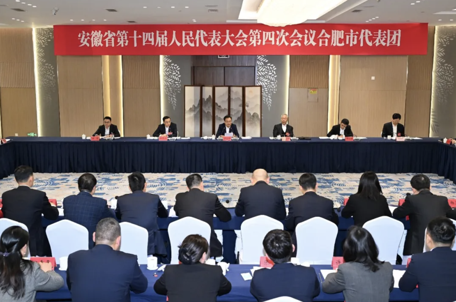 审议中,张泉、王新华、杨森、刘明源、项兴初、姚和平、吴频、刘忠等8名代表围绕政府工作报告和纲要草案谈感受、提建议,现场气氛热烈。梁言顺认真听取发言,与大家互动交流。他说,政府工作报告坚持以习近平新时代中国特色社会主义思想为指导,总结成绩客观全面,目标安排科学务实,任务举措重点突出,是一个鼓舞人心、催人奋进的报告。纲要草案体现时代特征、彰显安徽特色、顺应群众期盼,是奋力谱写中国式现代化安徽篇章的施工图。我完全赞成。