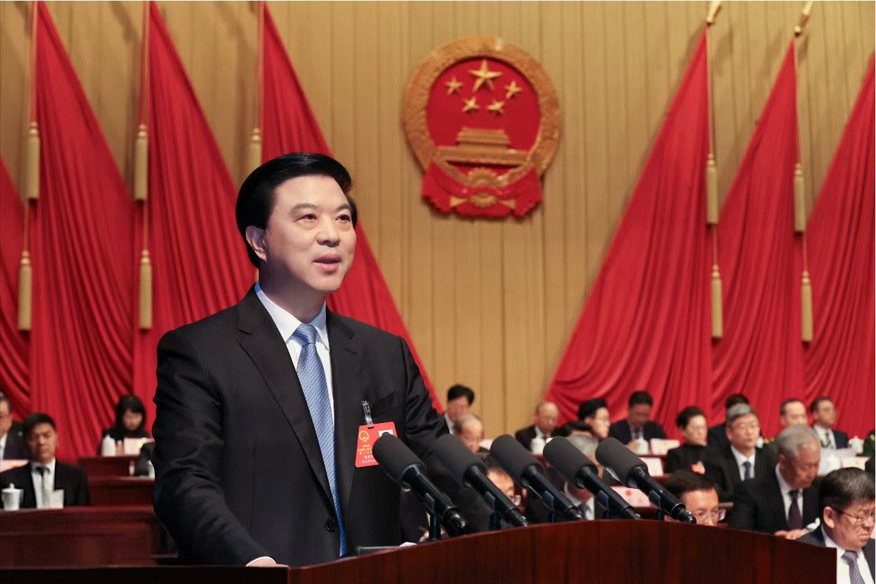 省十四届人大三次会议举行第二次全体会议 梁言顺、王清宪、唐良智等出席 陶明伦作省人大常委会工作报告