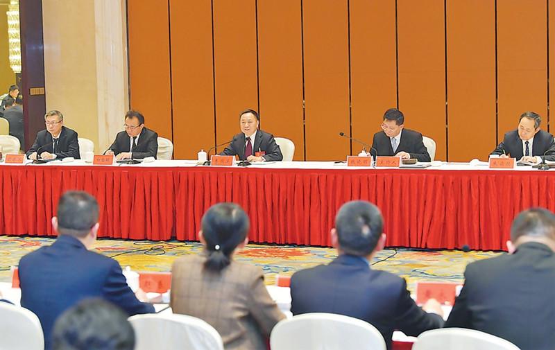 代表在驻地审议《政府工作报告》